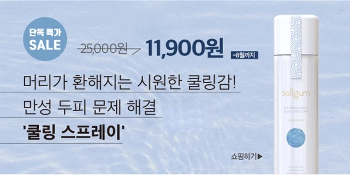솔금 두피 폼은 온천수와 8종 히알루론산이 두피에 흡수돼 수분을 채워주고 잔여물이 남지 않아 끈적임이 없다. (바로가기)