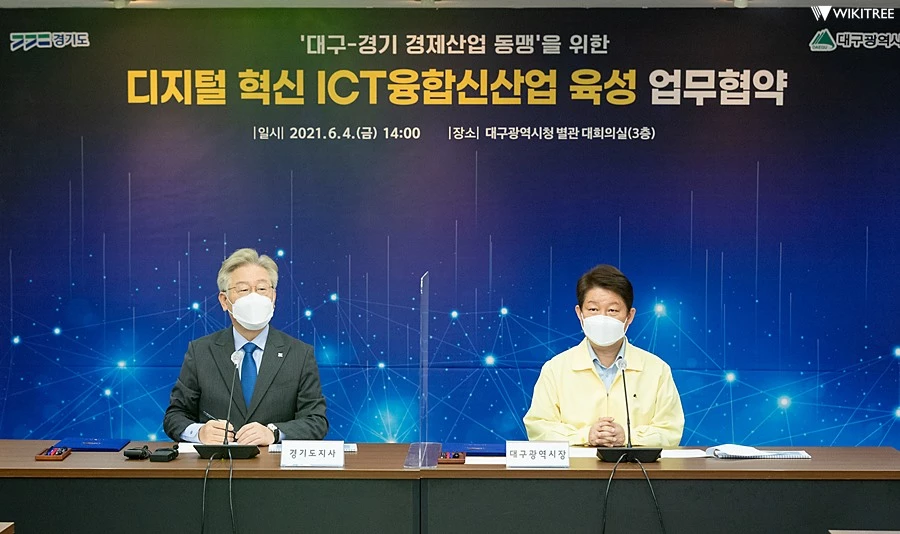 이재명 경기도지사는 4일 대구광역시청에서 권영진 대구시장과 이 같은 내용의 ‘디지털 혁신 ICT(정보통신기술)융합신산업 육성을 위한 업무협약’을 체결했다.