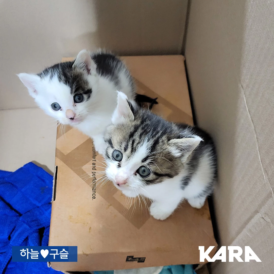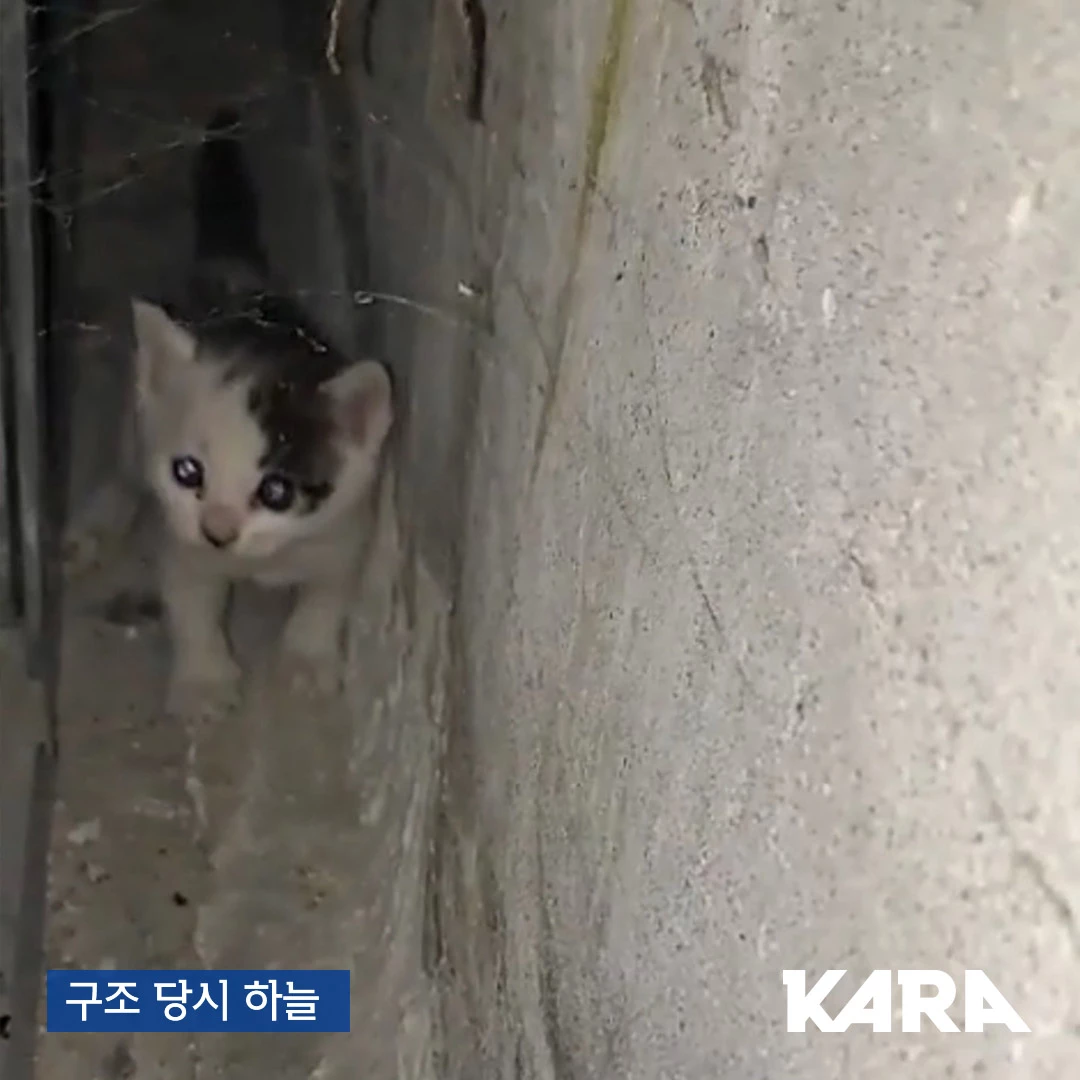 얼마 전 하늘이와 구슬이는 서울 관악구 서울대입구역 근처 한 매장에서 구조됐다. 천장과 건물 내부의 막힌 벽 사이에 갇혀 있었다. 매장 직원들이 직접 벽을 뚫어 구조해 카라에 인계했다.