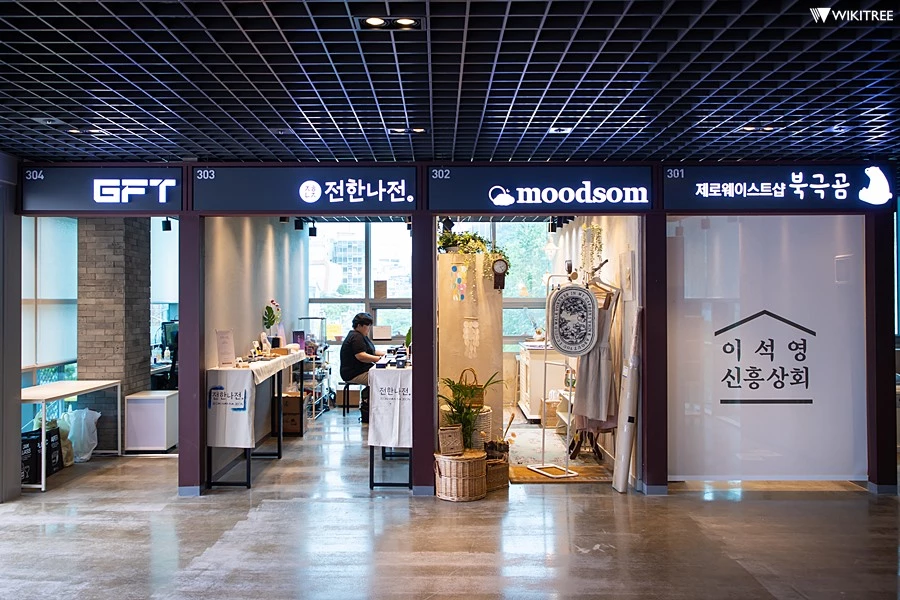 제품 홍보를 위한 영상·미디어 촬영 스튜디오, 간단한 사무작업 및 회의를 진행할 수 있는 공유 오피스, 비즈니스공유·플리마켓·쇼룸 라운지 등이 배치됐고, 1인 전용 예약제 미용실, 핸드메이드 공예품, 리빙편집샵, 독립서점, 꽃집, 수족관, 제로웨이스트샵, 메이크업 컨설팅, 카페, 음식점 등 다양한 업종이 입점했습니다.