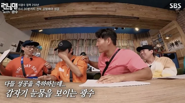 유재석과 김종국은 "갑자기 왜 울어?, 아이 이렇게 되면 다른 멤버들 아버님 이름도 외워야 되냐"며 이광수를 위로했다.