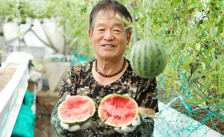 [포토]사과처럼 깎아 먹는 강진군‘애플수박’