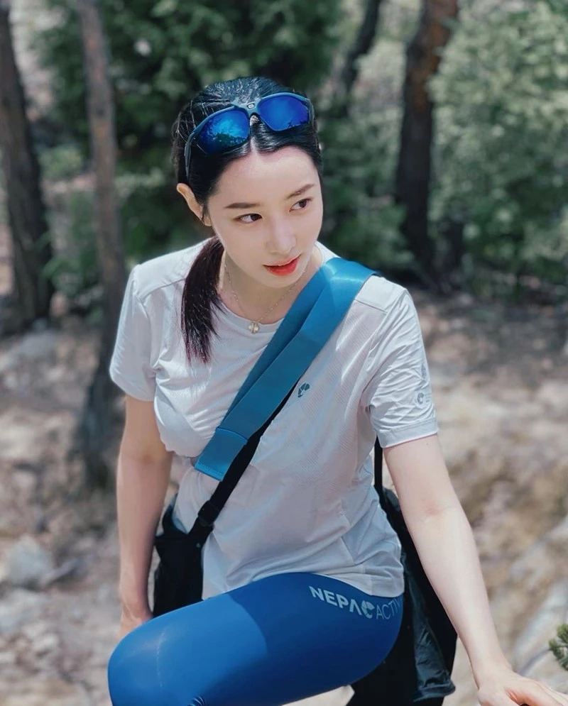 조현은 모델로 활동하는 아웃도어 브랜드 옷을 입고 산에 오르는 사진 여러 장도 공개했다.