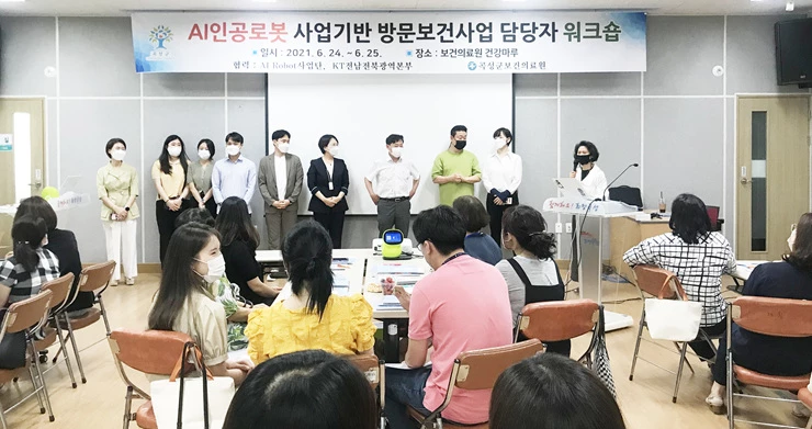 워크숍에는 곡성군 방문보건 담당자들과 KT 전남전북광역본부,AI Robot사업단이 참석했다. 이들은 AI(인공지능)와 IoT(사물인터넷)를기반으로 하는 어르신 건강관리 서비스를 제공하기 위해 협력하고 있다.