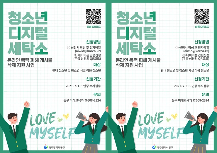 광주시 동구(청장 임택)는 온라인상에 무분별하게 게시·유포된 청소년들의 디지털 정보를 삭제 지원하기 위해 광주 최초로 ‘청소년 디지털 세탁소’를 운영하고, 신청자 모집에 나선다고 밝혔다.