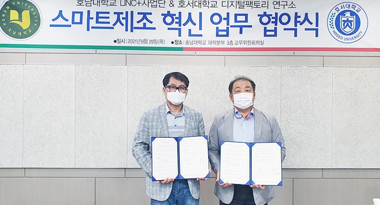 호남대학교 LINC+사업단(단장 양승학)은 6월 29일 대학본부 3층 교무위원회의실에서 호서대학교 디지털팩토리 연구소(소장 김수영)와 스마트제조혁신에 대한 업무협약을 맺었다.