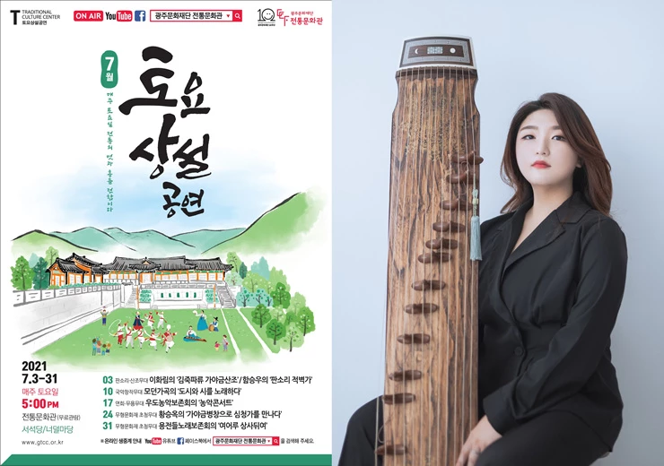 오는 7월 3일(토) 오후 5시에는 전통문화관 서석당에서 ‘이화림의 김죽파류 가야금산조’와 ‘함승우의 판소리 적벽가’ 등 판소리와 산조무대를 선보인다.