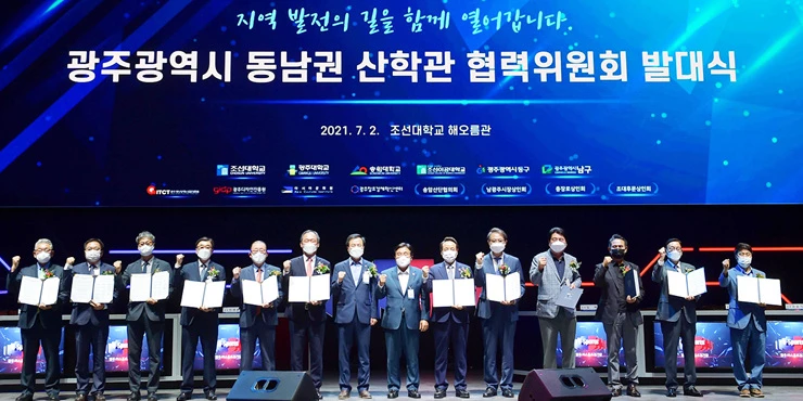 광주 동남권 지역경제 발전과 맞춤형 전문인재 양성을 위한 산·학·관 협력위원회 발대식 및 업무협약식(MOU)이 조선대 해오름관(광주이스포츠경기장)에서 개최됐다.