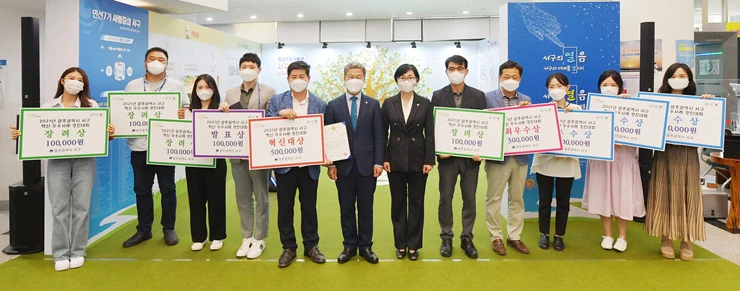 혁신대상의 영예는 일자리정책과 “「서구 START UP center」청년, 꿈을 품다! 서구, 꿈을 이루다!>, 최우수상은 통합돌봄과 ”AI 지능형 통합돌봄케어모델 구축“과 복지정책과 ”광주형 인공지능(AI) 돌봄시스템 구축“에 각각 돌아갔다.