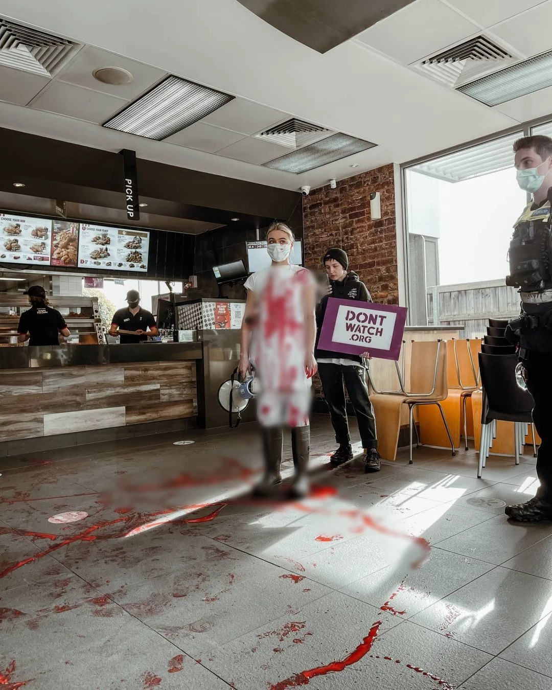 지난 5일(현지시각) 뉴질랜드 헤럴드에 따르면 최근 호주 멜버른 큐 지역의 KFC 매장에는 채식주의자 모임 회원들이 급습해 테러에 가까운 동물 학대 반대 시위를 벌였다.