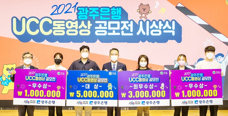 이날 송종욱 광주은행장은 수상자들에게 직접 시상을 하며 “다양한 니즈를 가지고 있는 고객과의 소통창구를 다각화하고자 실시한 UCC 공모전을 통해 고객님들께 더 친숙한 은행으로 다가가는 계기가 되었으면 좋겠다”며 “광주은행만의 브랜드 이미지를 강화하여 고객과 지역민께 사랑받고 신뢰받는 지속가능한 100년 은행으로 성장해 나가겠다”고 말했다.
