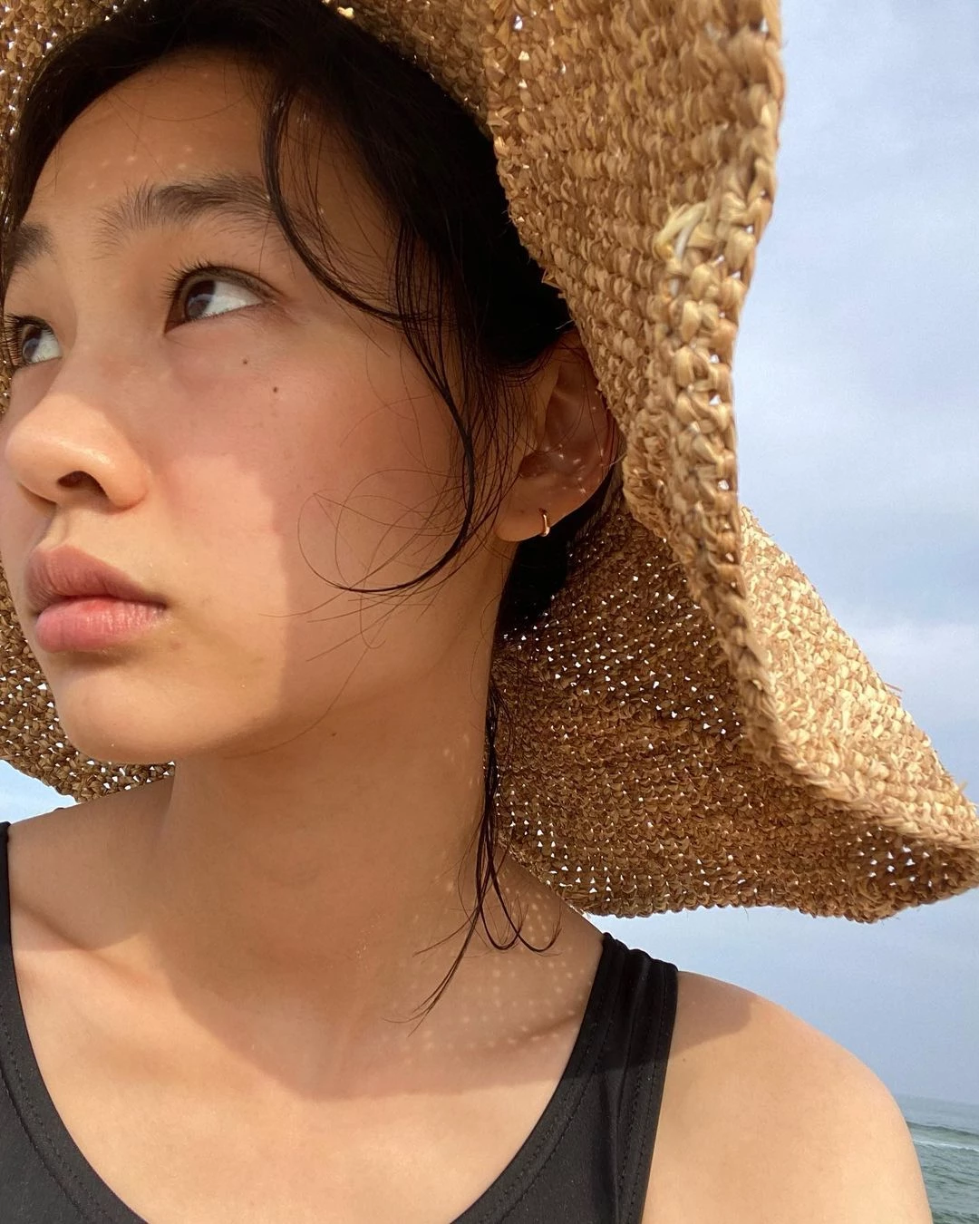 특히 그가 입은 수영복은 시크한 블랙 감성을 살린 원피스였다. 기본에 충실한 디자인이지만 그는 모델핏을 자랑하며 남다른 매력으로 소화했다. 얼굴을 거의 다 덮는 밀짚모자도 그의 매력을 극대화했다.