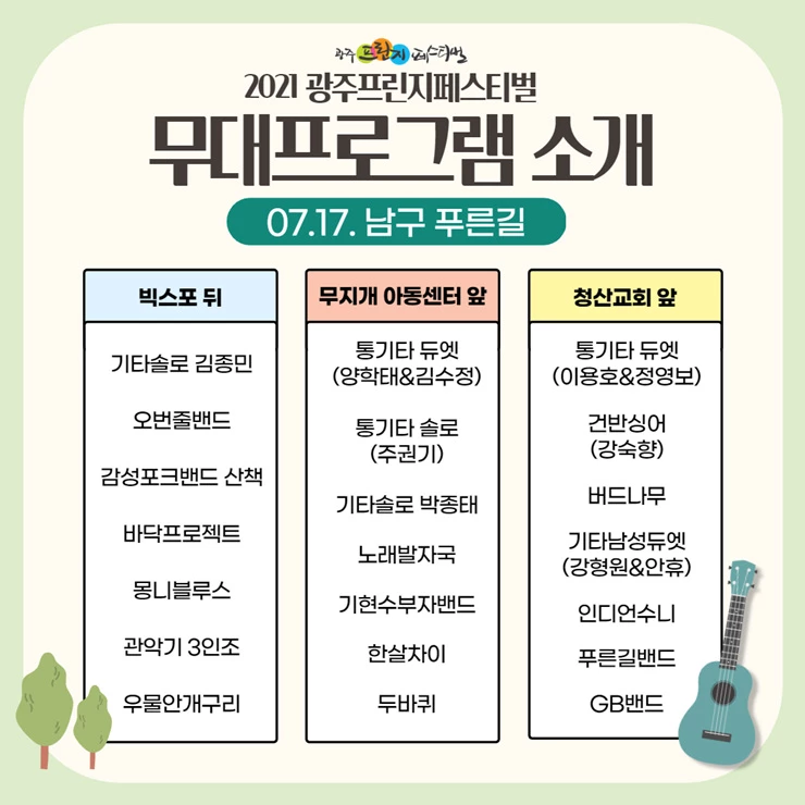 ‘2021 광주프린지페스티벌’, 푸른길 산책로서 통기타 선율 즐기세요
