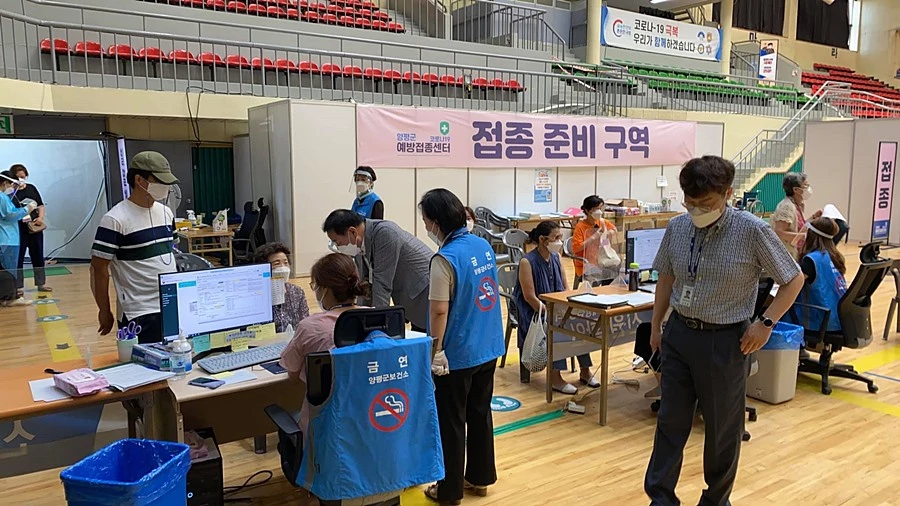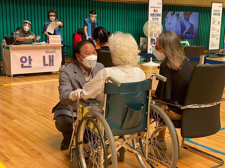 오늘도 이른 아침부터 집무실에서 오전 회의를 마친 후 접종센터를 둘러보고, 양동면으로 이동 중입니다.