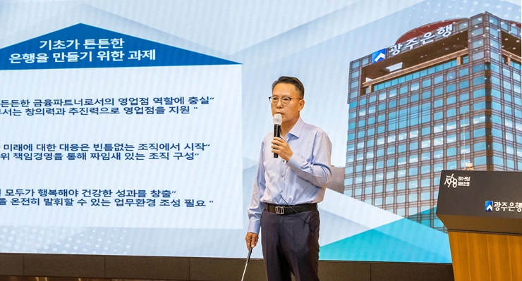 송종욱 광주은행장은 “테이퍼링 및 금리인상, 코로나19 장기화 등 경영환경의 급격한 변화가 우려되는 하반기 상황에 대응해 건전성 관리 강화, 자산포트폴리오 점검 등 선제적 대응전략을 마련하고, 금융시장 전반의 구조변화와 그 대상인 고객의 변화에 맞춰 변화와 혁신을 거듭해 나가야 한다”며, “언택트 문화와 디지털기술의 발전이 강조되는 시대이지만 그 속에서도 고객의 감정과 온도를 전하는 휴먼터치 기술과 지역민·고객의 소통에도 집중하며 지역밀착경영과 포용금융을 실천해나감으로써 지속가능한 100년 은행으로 한걸음 더 나아가자”고 말했다.
