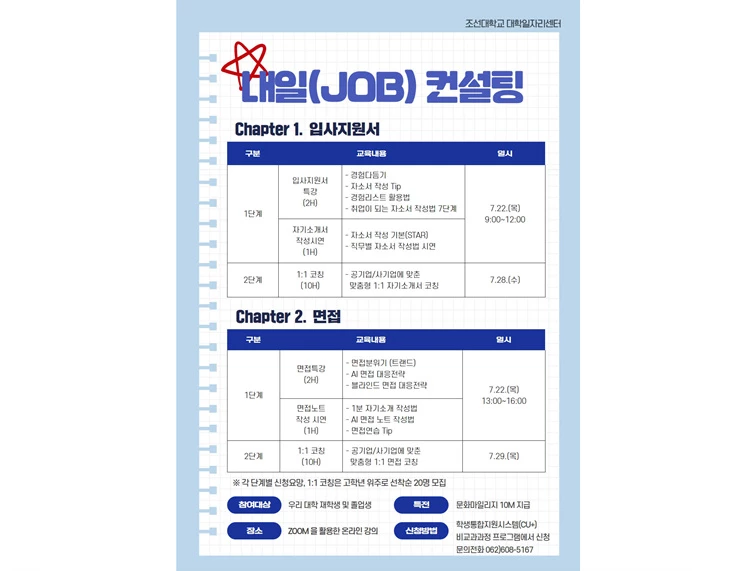 조선대 ‘재학생·졸업생 누구나’ 내일(JOB)컨설팅 준비하세요
