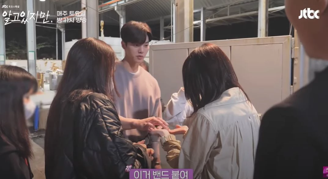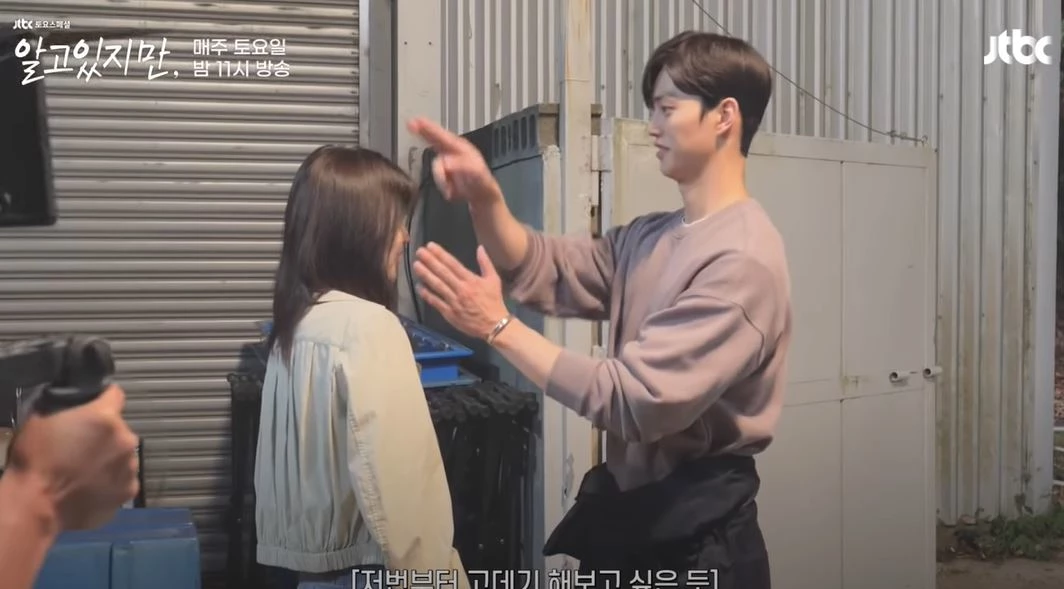 JTBC 드라마 '알고 있지만' 주연 배우 송강과 한소희의 메이킹 영상이 화제다.