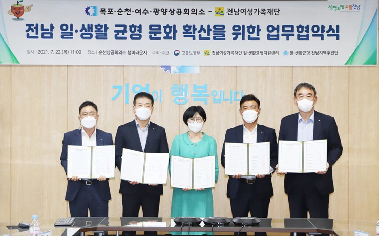 전남여성가족재단 일·생활균형지원센터는 목포·순천·여수·광양 4개 상공회의소와 기업의 일‧생활 균형 인식 개선을 위한 업무협약을 했다고 밝혔다.