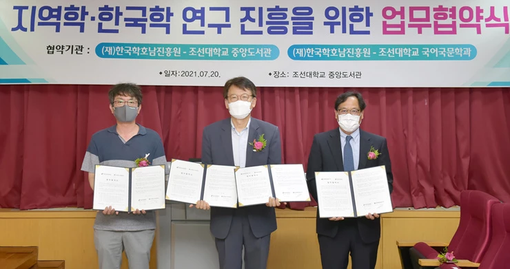 지난 20일 조선대학교 중앙도서관 7층 영상세미나실에서 진행된 협약식은 지역학·한국학 연구 및 보급의 활성화와 지역 전문 인력 양성을 위해 진행됐다. 이번 협약으로 각 기관은 인적⋅물적 자원을 서로 연계하고, 유기적으로 상호 협력하기로 했다.