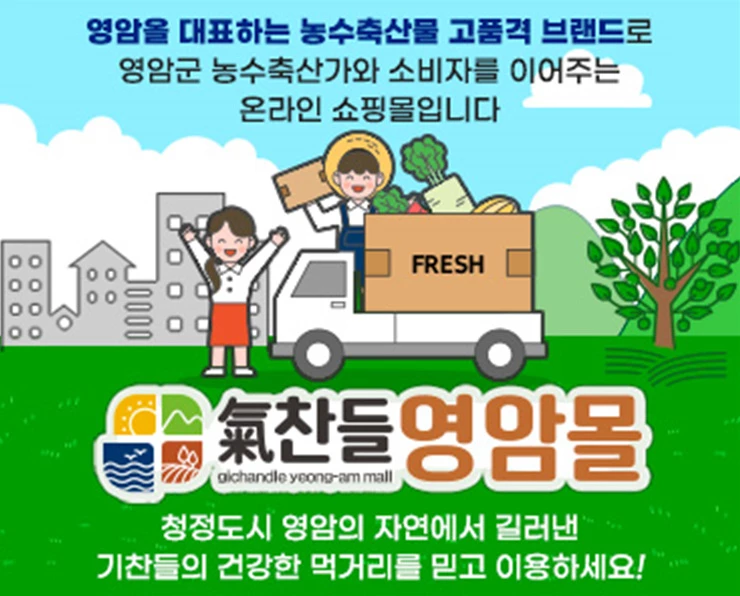 온라인 쇼핑몰인 ‘기찬들 영암몰’은 바이럴마케팅, 기획전 운영 등 차별화된 홍보마케팅을 추진해 큰 호응을 얻고 있으며, 지난 7일에는 네이버 쇼핑몰 라이브커머스를 통한 판매와 홍보를 진행한 바 있다. 또한 영암서울농장을 운영하여 도시‧농촌 간 상생 발전을 통해 귀농·귀촌의 안정적인 정착을 돕고 있으며, 지구온난화에 대비하여 아열대 작목 적응 실증시험 및 스마트 팜 교육장으로 활용하여 대체작목 육성을 통해 미래 영암군 농업의 새로운 소득작목을 개발하고 있다.