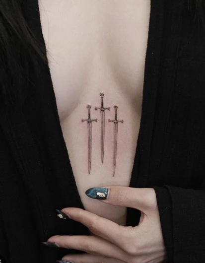 배우 한예슬이 자신의 인스타그램에 셀카를 올린 가운데, 그의 가슴에 있는 ‘세 자루 칼’ 문신이 화제를 모으고 있다.