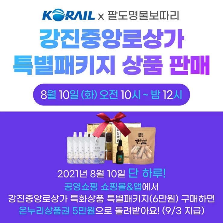 8월 10일 10시~24시 공영쇼핑에서 구매 가능, 온누리 상품권 함께 제공