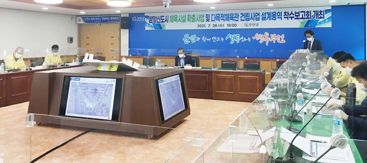 전남 무안군(군수 김산)은 지난 28일 군청 상황실에서 남악신도시 체육시설 확충사업과 다목적체육관 건립사업 설계용역 착수보고회를 개최했다고 밝혔다.