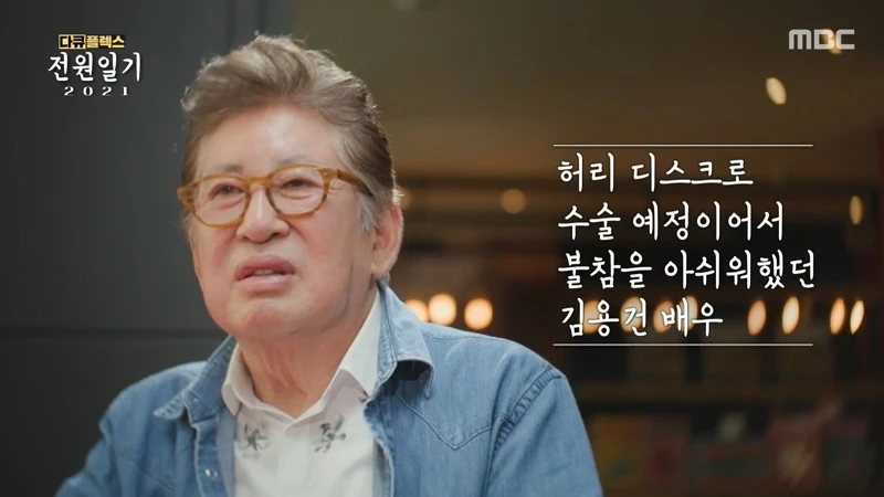 그런데 김용건은 해당 프로그램에 전면적으로 참여할 수 없었다. 병이 생겼기 때문. 김용건은 ‘전원일기 2021’과의 인터뷰에서 “(실은) 몸이 좀 불편했다. 허리가 조금 안 좋아서 병원 치료를 받고 있다”고 말했다. 그는 허리 디스크로 수술을 앞두고 있어서 프로그램에 적극 참여하지 못한 데 대해 아쉬워했다.