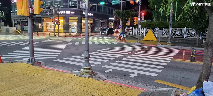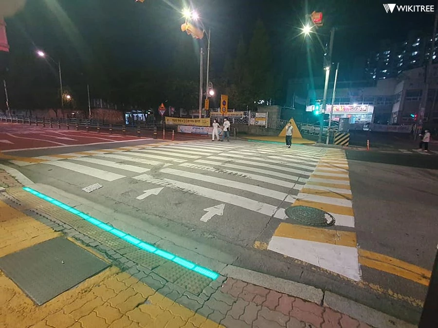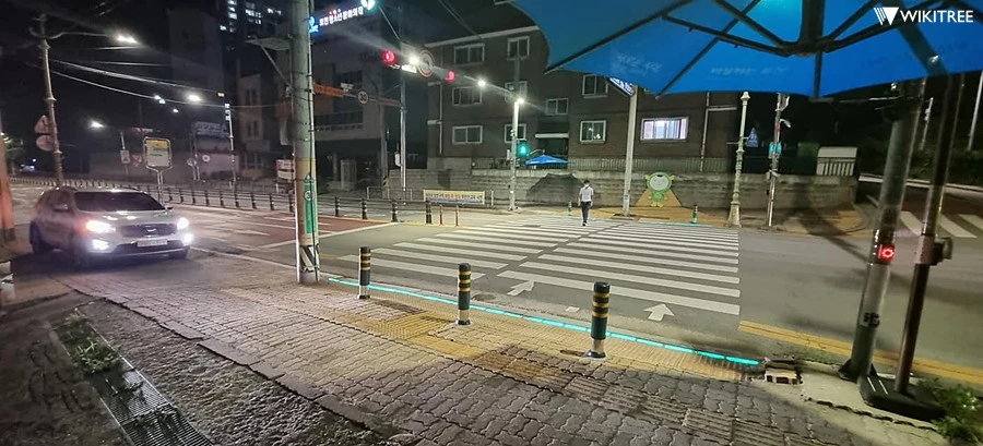 포천시는 스마트폰 보행자와 어린이, 노약자의 교통사고를 예방하고자 어린이보호구역 중 보행자 횡단 교통사고 위험요소가 많은 곳에 LED 바닥신호등을 설치하였습니다.