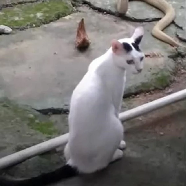 가족을 지키기 위해 코브라와 맞서는 고양이의 모습이 공개됐다.