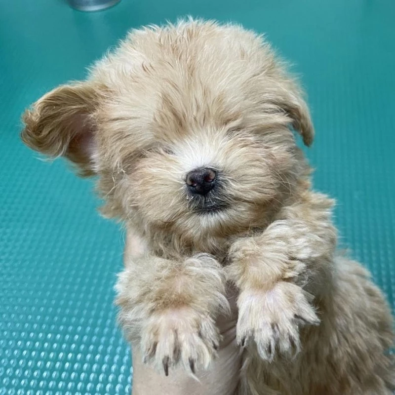 몸무게가 700g밖에 되지 않는 새끼 강아지였는데 놀랍게도 두 눈이 없었다. 인위적으로 눈을 손상한 흔적은 없었다. 눈이 없이 태어나자 사람이 유기한 걸로 보인다.