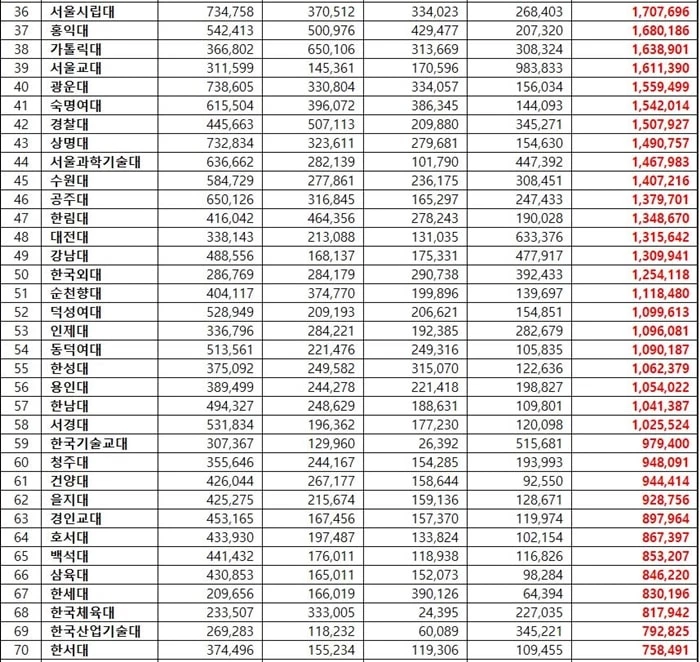 대학교 '8월 브랜드 평판' 순위가 쭉 공개돼 이목이 집중됐다.