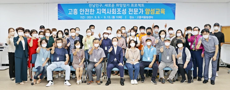 고흥군(송귀근 군수)은 누구나 안심하고 생활할 수 있는 안전한 지역사회망 구축으로 청년 유입 촉진과 안정적인 정착을 위한 지역 맞춤형 시책으로 안전한 지역사회조성 전문가 양성교육을 실시한다.