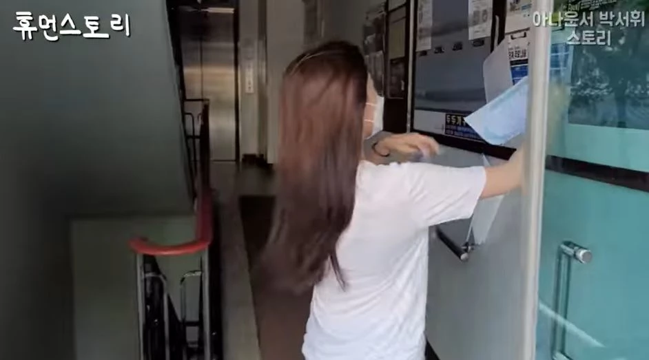 박 아나운서는 한 아파트 단지로 들어가더니 손에 들고 있던 '전단지'를 붙이기 시작했다. 그는 자신을 "과거 걸그룹 출신 아나운서 박서휘라고 한다. 올해 나이는 29세"라고 소개했다.