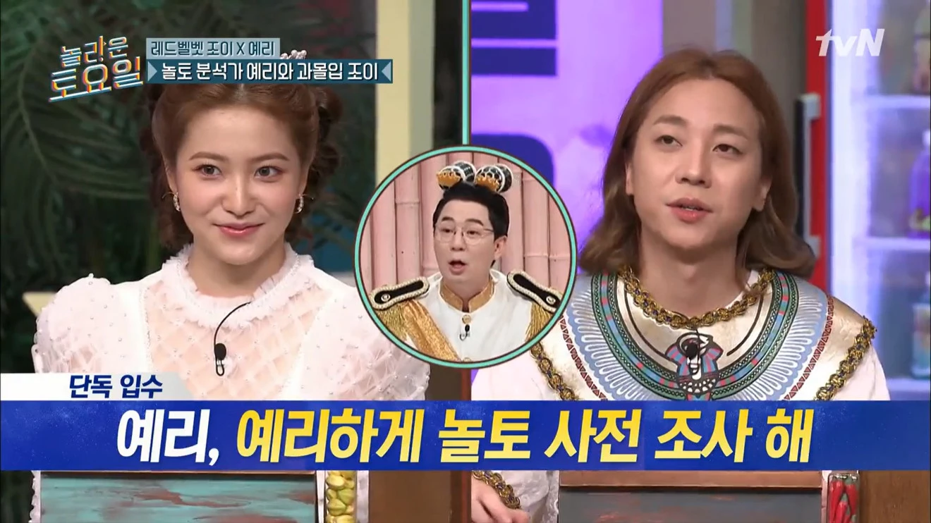지난 14일 방송된 tvN 예능 프로그램 '놀라운 토요일'(이하 놀토)에는 조이와 예리가 게스트로 출연했다. 이날 예리는 '놀토'에 대해 사전 조사를 해왔다고 밝혔다.