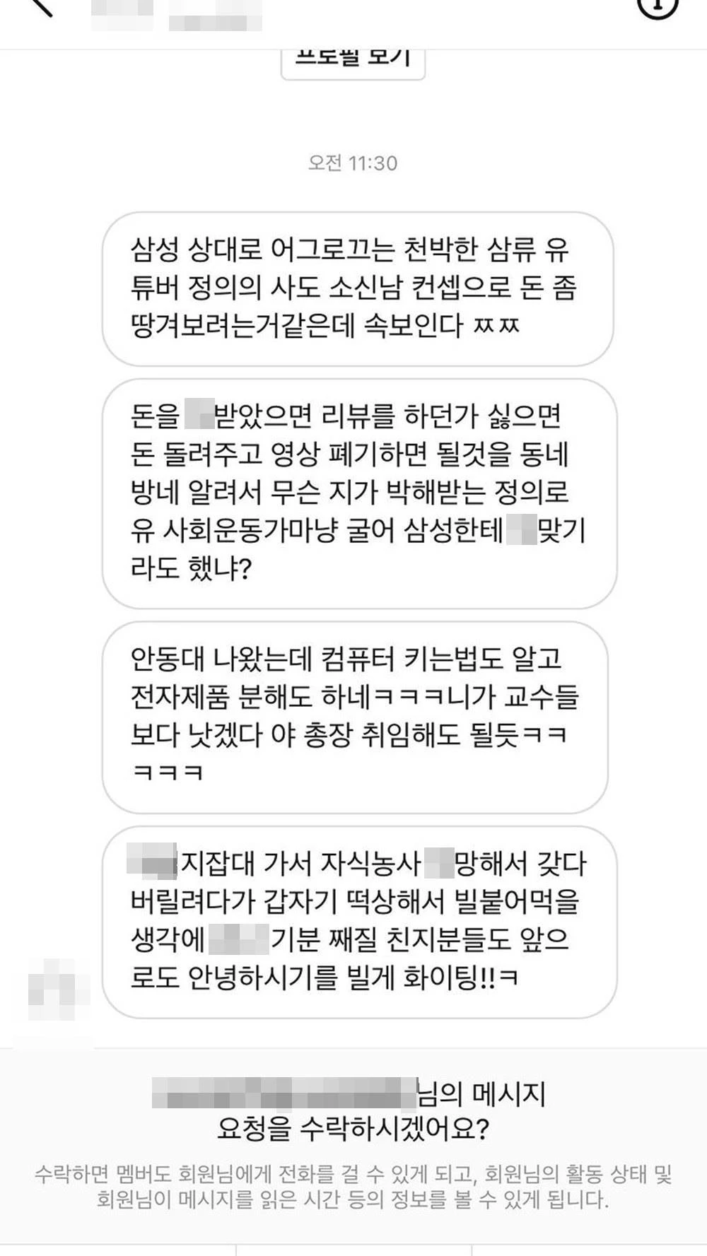 네티즌이 보낸 악성 DM 박제