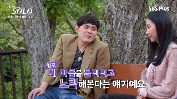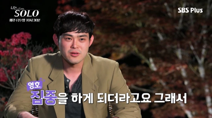 제작진과 인터뷰에 나선 영호는 "이 안에 있으면 할 게 (사랑에 대한) 생각밖에 없지 않냐. 온전히 집중해야 되는 대상이 (사랑 밖에) 없지 않냐"며 감정이 격해졌던 이유를 설명했다.