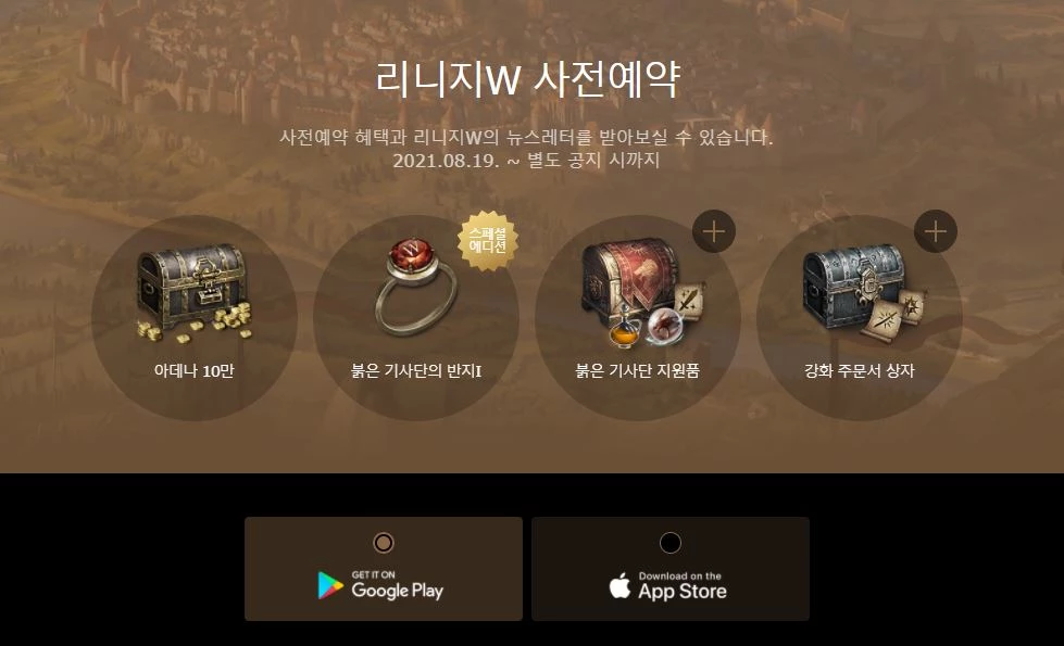 엔씨(NC)는 19일 오전 10시(한국 기준) 리니지W의 글로벌 사전예약 프로모션을 시작했다. 이용자는 리니지W 공식 홈페이지와 구글 플레이, 애플 앱스토어에서 사전 예약에 참여할 수 있다. 모든 예약자는 게임 출시 후 다양한 아이템을 받을 수 있다.