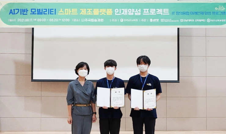 이번 프로젝트는 전남대학교 산학협력단, 광주산학융합원 등과 연계해 운영했으며, 온라인 사전교육, 기초교육 강의와 융합실습으로 진행됐고 ‘메이커톤(make a ton) 경진대회’도 열어 우수팀에 대해 시상도 했다.