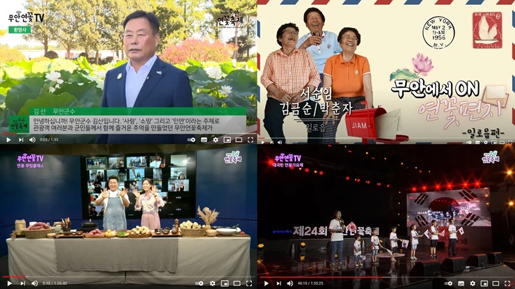 이번 무안연꽃축제는 코로나19 감염위험 방지를 위해 무안연꽃TV 유튜브와 축제홈페이지, SNS 등 온라인 플랫폼을 구축한 가운데 비대면 방식으로 진행됐으며, 시청자들이 3개 분야 20여 개의 프로그램을 어디서든 안전하고 편안하게 즐길 수 있도록 했다.