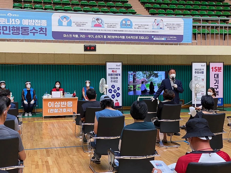 이어 정 군수는 "접종 센터 운영 및 방역에 최선을 다해주고 계신 의료진과, 양평군 보건소 직원, 봉사자, 공직자 여러분들의 헌신과 노고에 깊은 감사를 드린다"고 언급했다.