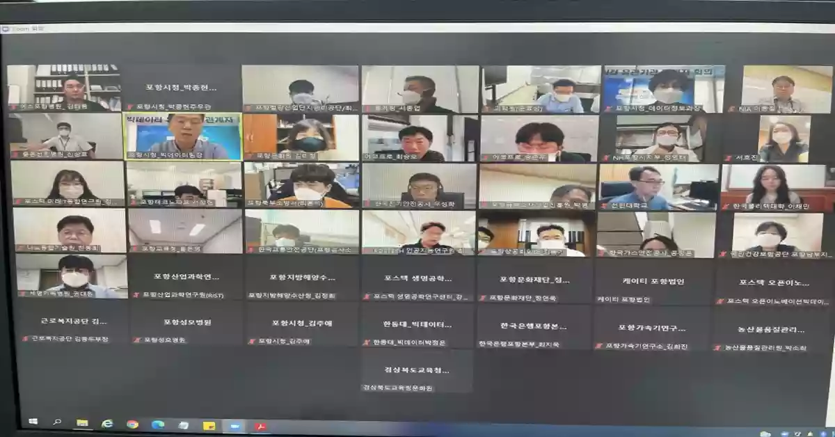 시는 23일 포항형 빅데이터 프로젝트의 체계적이고 적극적인 추진을 위해 지역 6개 분야, 66개 유관기관이 참여하는 온라인 회의를 개최했다.