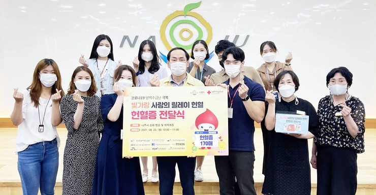 나주시(시장 강인규)는 23일 대한적십자사 광주전남혈액원이 주관하는 ‘빛가람 사랑의 릴레이 헌혈 캠페인’을 통해 기부된 헌혈증 170장을 기탁받았다고 밝혔다.