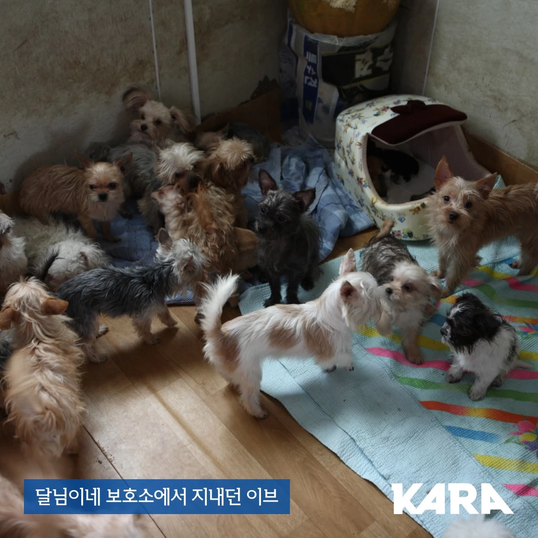버려진 강아지들을 다시 구조한 곳은 카라였다. 카라 활동가들은 이브를 포함한 강아지들을 카라 보호소 더봄센터에서 지낼 수 있도록 했다.