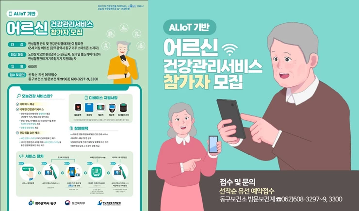 광주시 동구(청장 임택)는 ‘AI·IoT기반 어르신 건강관리서비스’가 보건복지부 시범사업 공모에 선정됨에 따라 인공지능과 사물인터넷을 활용한 비대면 건강관리 서비스 사업을 본격적으로 추진한다고 밝혔다.