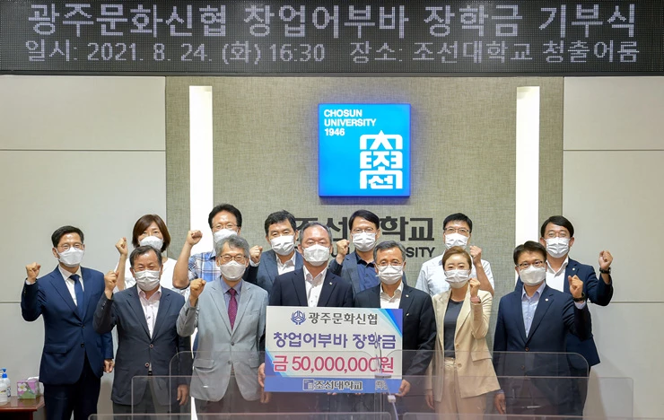 광주문화신협이 조선대학교에 창업어부바 장학기금 5000만원을 기부했다.