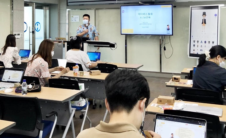 이번 연수는 코로나19와 온라인 교육으로 관심이 높아진 메타버스 및 가상현실 체험을 통해 교원들의 AI·SW 활용 역량을 강화하기 위해 기획됐다. 메타버스는 가상·추상을 의미하는 메타(Meta)와 현실세계를 의미하는 유니버스(Universe)의 합성어로 현실과 비현실이 공존하는 세계를 뜻한다.