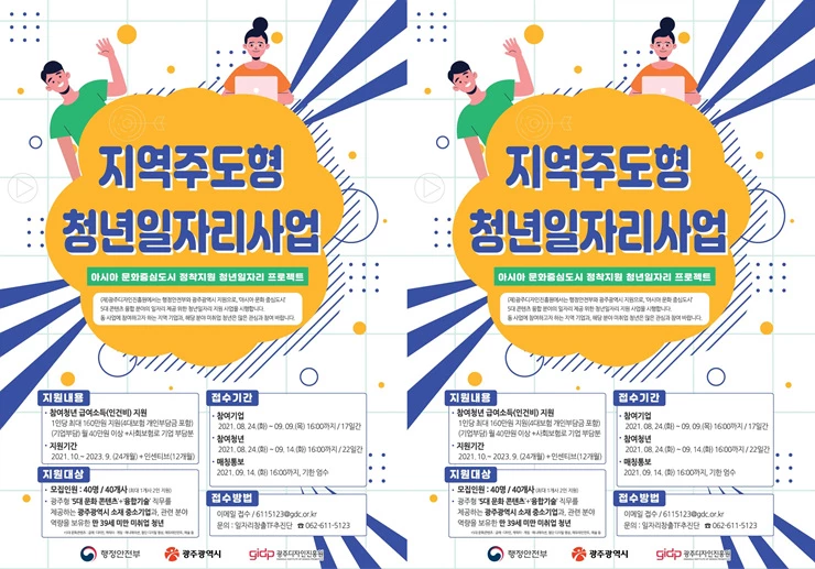 행정안전부와 광주광역시가 지원하는‘2021년도 지역주도형 청년 일자리 사업’일환으로 추진되는 이 사업은 공예․디자인 등 5대 문화콘텐츠 분야의 청년 고용 지원과 기업 육성, 지역 문화콘텐츠산업 활성화를 위한 것이다.