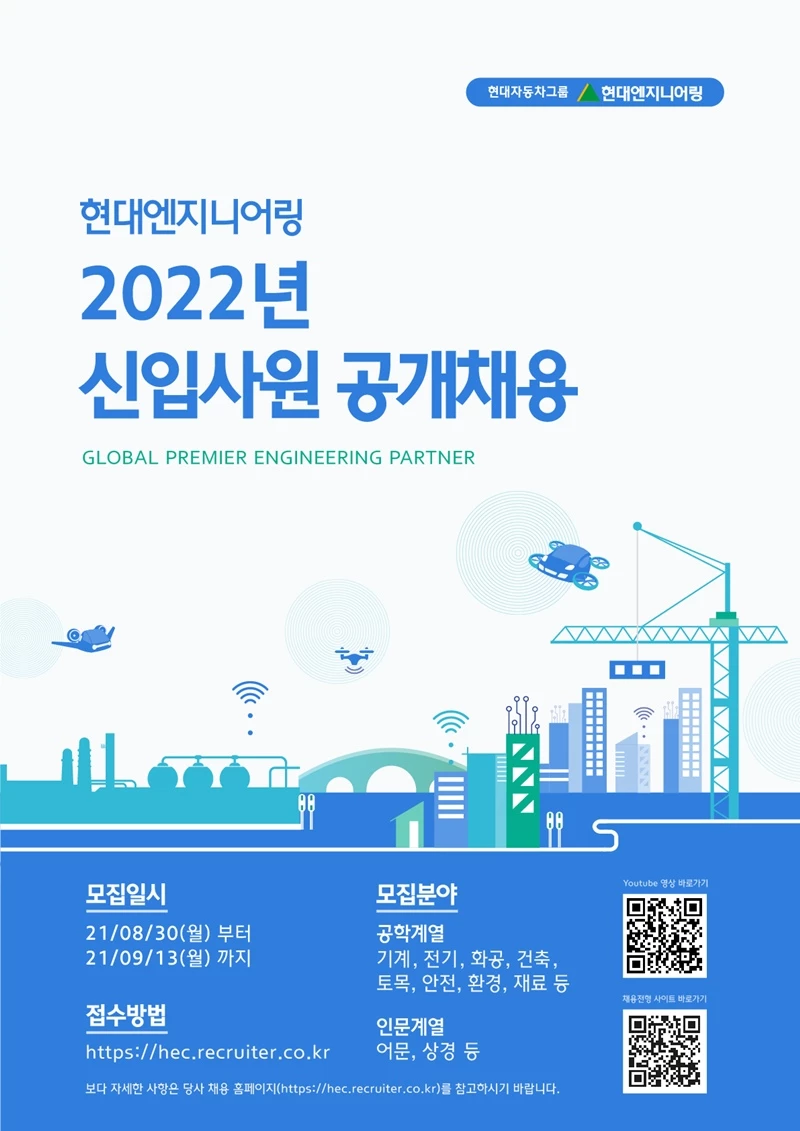 현대엔지니어링이 2022년도 신입사원 공개채용을 실시한다.