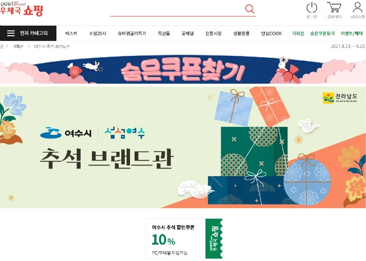 우체국쇼핑몰, 남도장터 방송…10% 할인 쿠폰